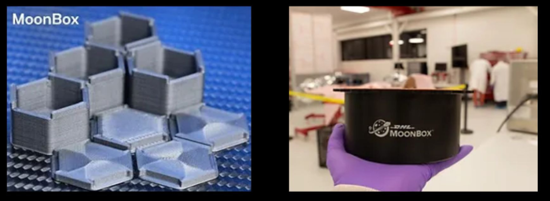 这些艺术作品存储好后,会被分装在蜂窝状的 MoonBox 中,最后合并装到一个 DHL MoonBox 罐中,固定在火箭着陆器的结构上。