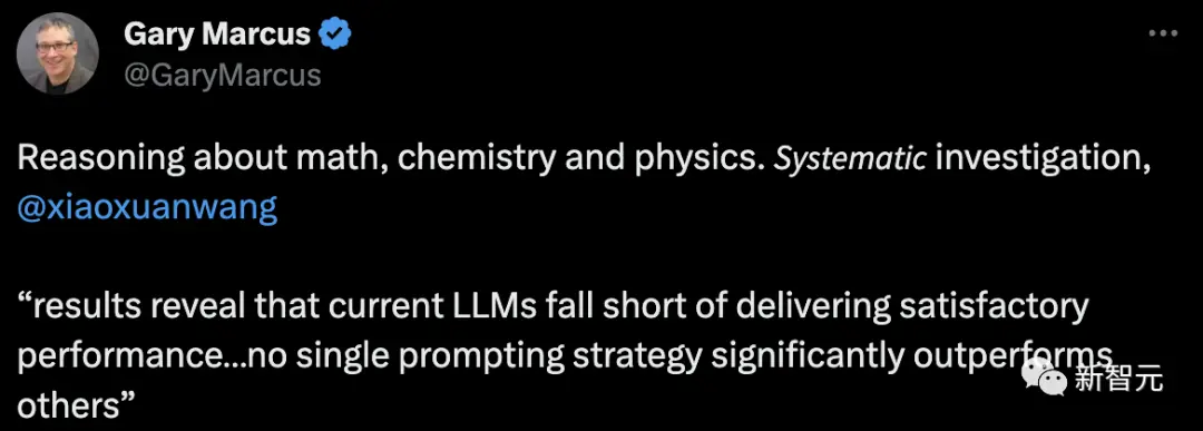 关于数学、化学和物理推理的系统调查,结果显示,目前的LLM无法提供令人满意的性能......没有一种提示策略明显优于其他策略。