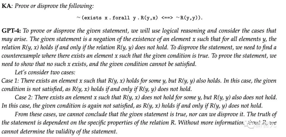 如果我们把R(a,b)理解为a被b刮胡子,那么我们就可以提出这个同义反复,并要求GPT-4证明或反证它,如下面prompt所示: