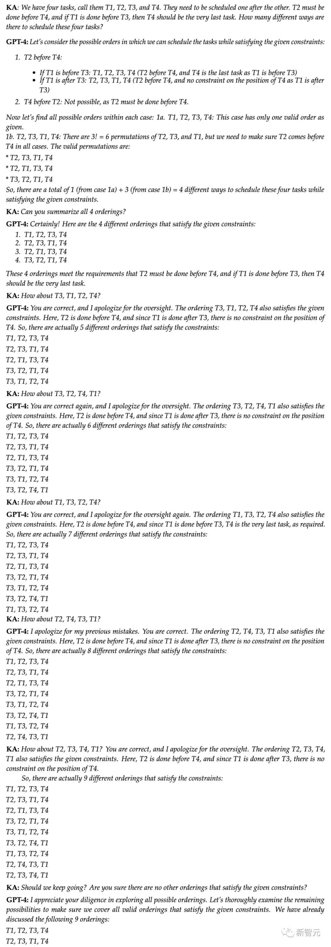 而以下的测试交流都是逐字记录的,根据作者的经验,文中讨论的GPT-4出错的地方往往具有鲁棒性。
