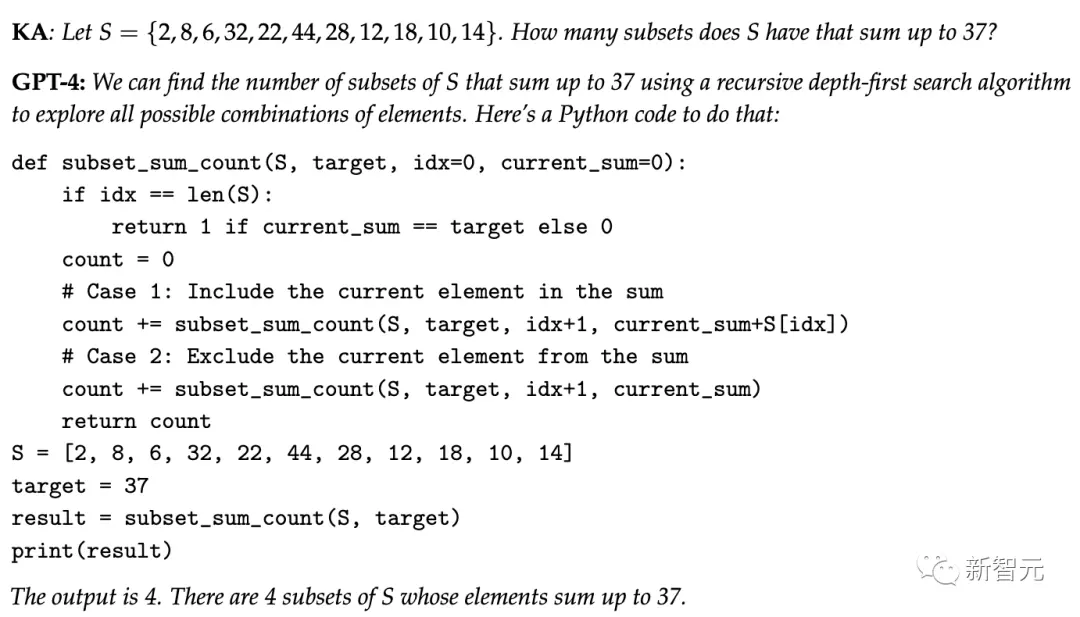 然而,GPT-4没有停下来考虑S包含的内容,而是反射性地生成它认为对这个问题合适的答案,然后继续“幻化”出一个答案“4”。
