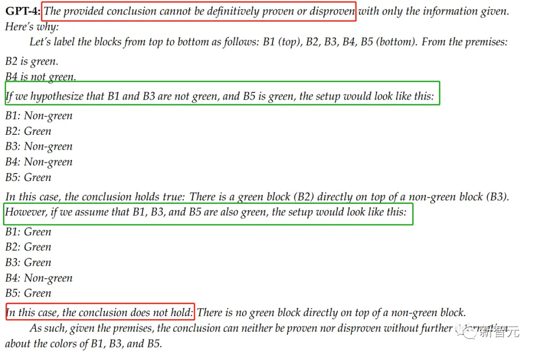 同时,GPT-4又一次展示了反复出现的不一致性问题——几乎在每一条回复中,GPT-4都声称推导出某个命题及其否定形式。