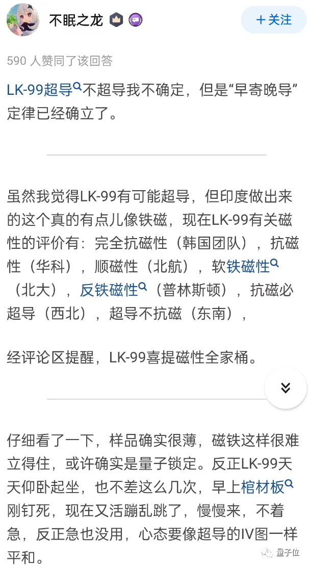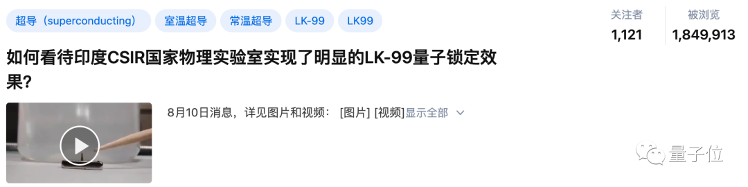 这也导致团队称“有量子锁定现象的”LK-99样品复现结果一出,即刻就登上知乎热搜: