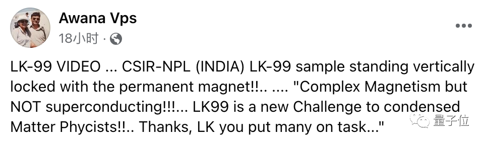 事实上,V.P.S.Awana博士领导下的印度CSIR国家物理实验室,是最早一批进行复现、并数次复现失败的团队之一。
