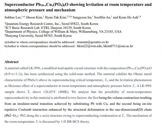 近期韩国的一个研究小组发表了一篇论文,宣称实现了临界温度超过400K(126.85℃)的常压室温超导,文中将这种“超导材料”称为LK-99。这一论文一经发布就在业内外引发了热烈讨论,毕竟一般来说,“超导”的条件一般十分苛刻。比如一些材料需要把环境温度降低到零下一百多度才能表现出超导的特性。