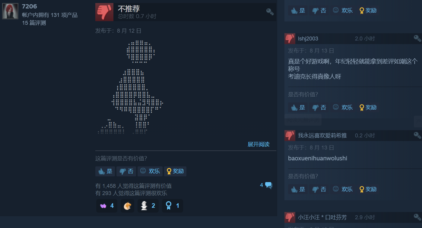 9%的好评率在Steam上都是倒数第一的,也是首个跌破10%好评的游戏,但是新低估计很快就会到来。