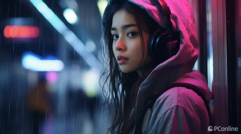进而是一个亚洲女孩儿,在下雨天的车站里戴着头戴式耳机的案例。