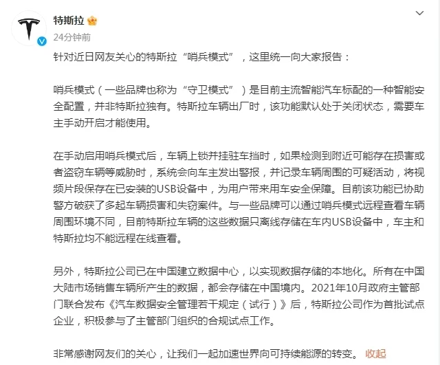 针对近日网友关心的特斯拉“哨兵模式”,这里统一向大家报告: