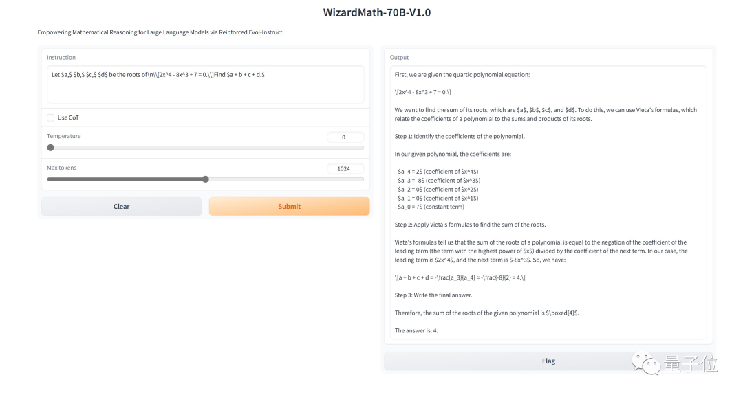 HuggingFace已上线3个在线可玩版本(分别为7B、13B和70B参数),各种数学题可以直接丢进去试一试。