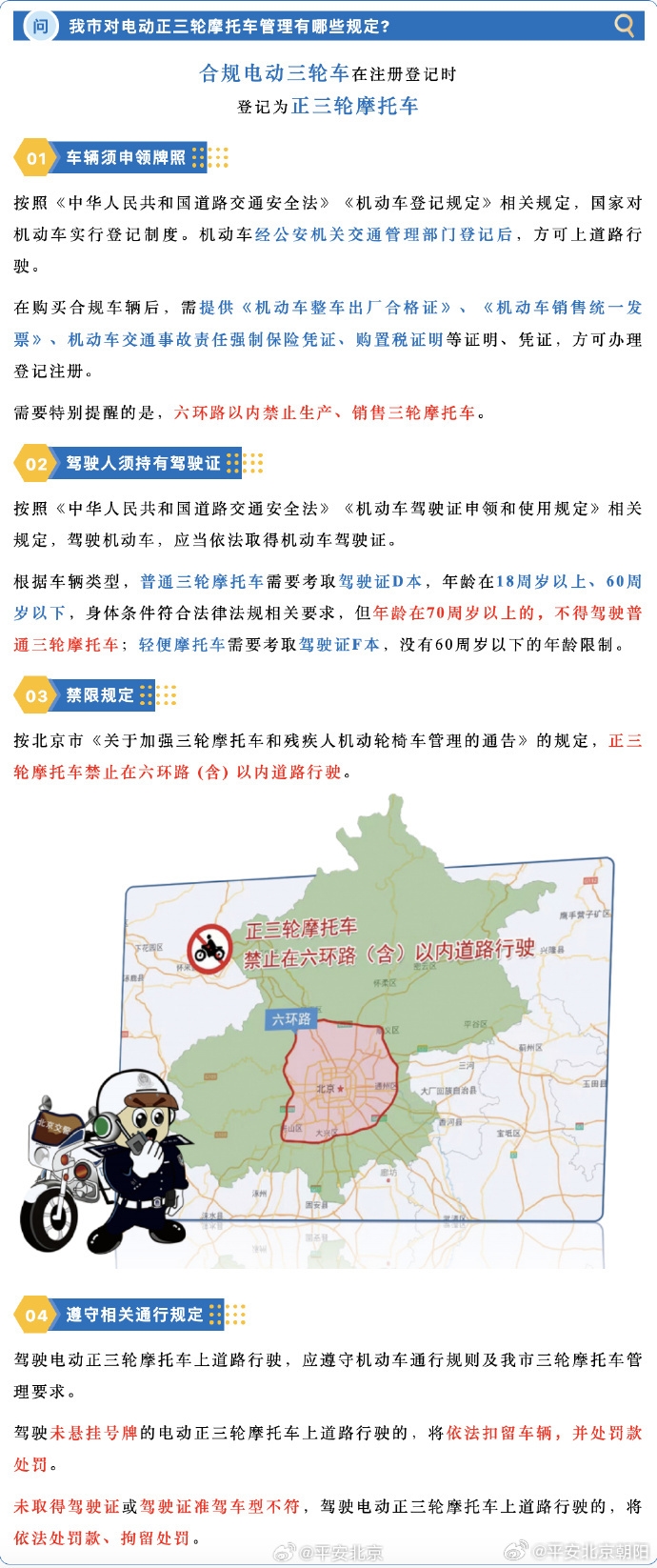 那么,对于合规的电动三轮车,在管理上有哪些规定呢?官方也是用图表给出了答案。