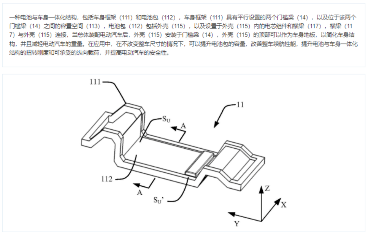 在应用中,在不改变整车尺寸的情况下,可以提升电池包的容量,改善整车续航性能,提升电池与车身一体化结构的扭转刚度和可承受的纵向载荷,并提高电动汽车的安全性。