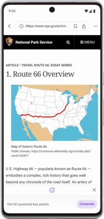 如果你可以访问移动端的Google应用,点击屏幕底部的图标后,Google就会从文章中调出一组人工智能生成的"要点"。该功能"仅适用于网络上向公众免费提供的文章";Google表示,该功能不适用于出版商标记为付费的网站。