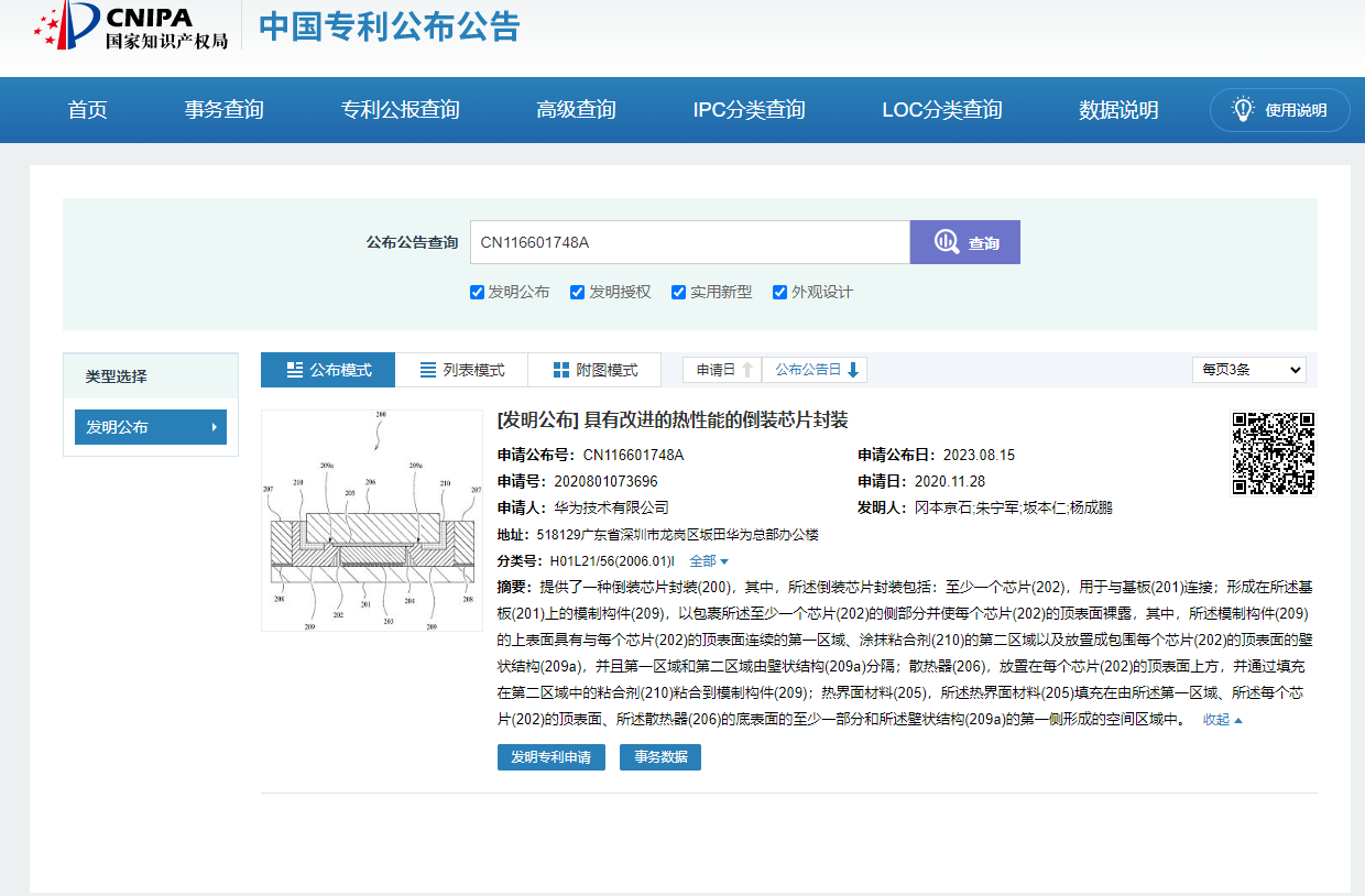 华为“具有改进的热性能的倒装芯片封装专利”摘要如下: