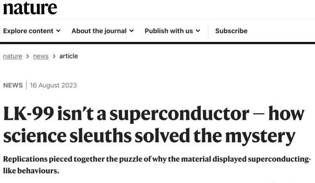 虽然一些评论家将LK-99的事件视为科学研究中可重复性的模范,但也有人表示,这是一个高调难题不寻常快速解决的例子。