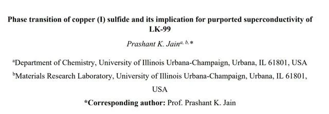无独有偶,在Jain论文发表的前一天,中国科学院物理所也证实了Cu2S杂质对LK-99的影响。