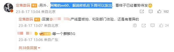 关于华为Mate60系列发布会的举办时间,之前认为会延期至10月份,但余承东今天在微博上表示,新款问界M7大五座会在9月份发布,考虑到去年9月份Mate50系列曾和问界M5 EV同台亮相,所以Mate60系列有很大概率在下个月发布。还有很多人关心麒麟处理器和华为5G会不会回归,只能说这是迟早的事情。
