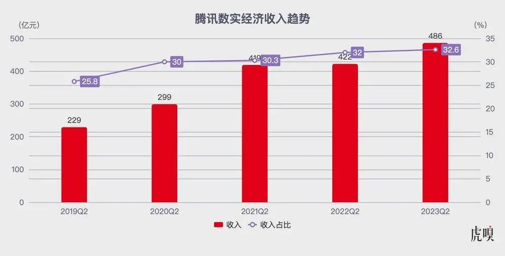 具体而言,扛起大梁的数实经济收入同比增长 15% 至 486.4 亿元,成为该季收入贡献最大板块——主要受益于疫情后线下经济恢复,线下线上商业支付活动骤增,以及视频号直播带货交易产生的收入、云服务的轻微增长。