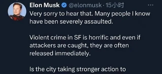 Bob Lee遇害的消息在币圈及科技界引起极大关注。马斯克发文称,“听到这个消息我很难过。我认识的很多人都遭到了严重侵犯”。他补充说,“旧金山的暴力犯罪是可怕的,即使袭击者被捕,他们通常也会被立即释放。”他同时质问旧金山市是否采取更强有力的措施来预防暴力犯罪。