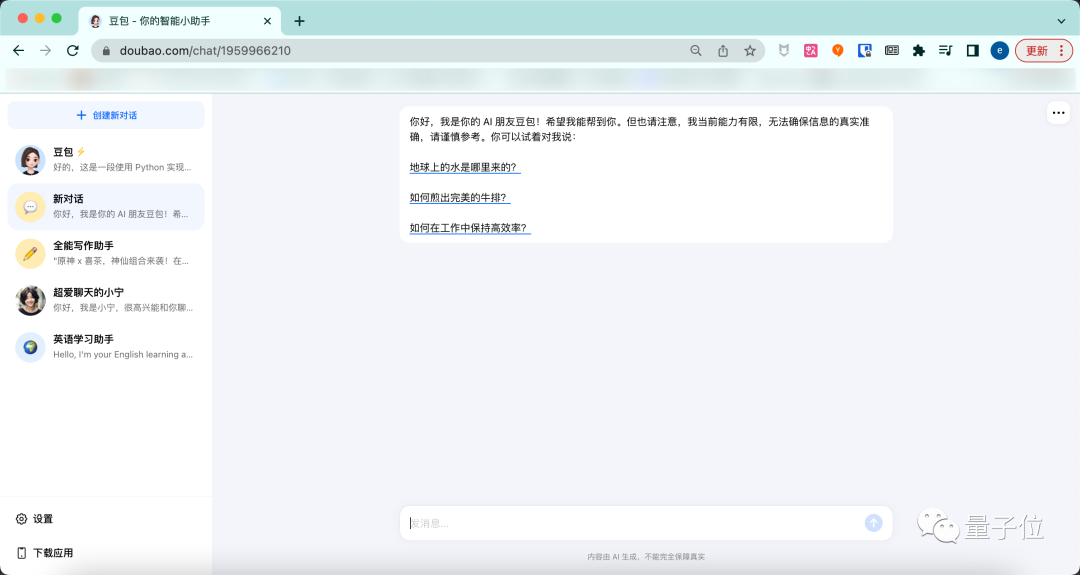 字节跳动版ChatGPT,现在人人可玩了!网页版、安卓版和iOS版同步上线,用抖音账号、手机号和苹果账号都能登录。并且无需排队,打开就能和这个名叫“豆包”的AI助手直接开聊。