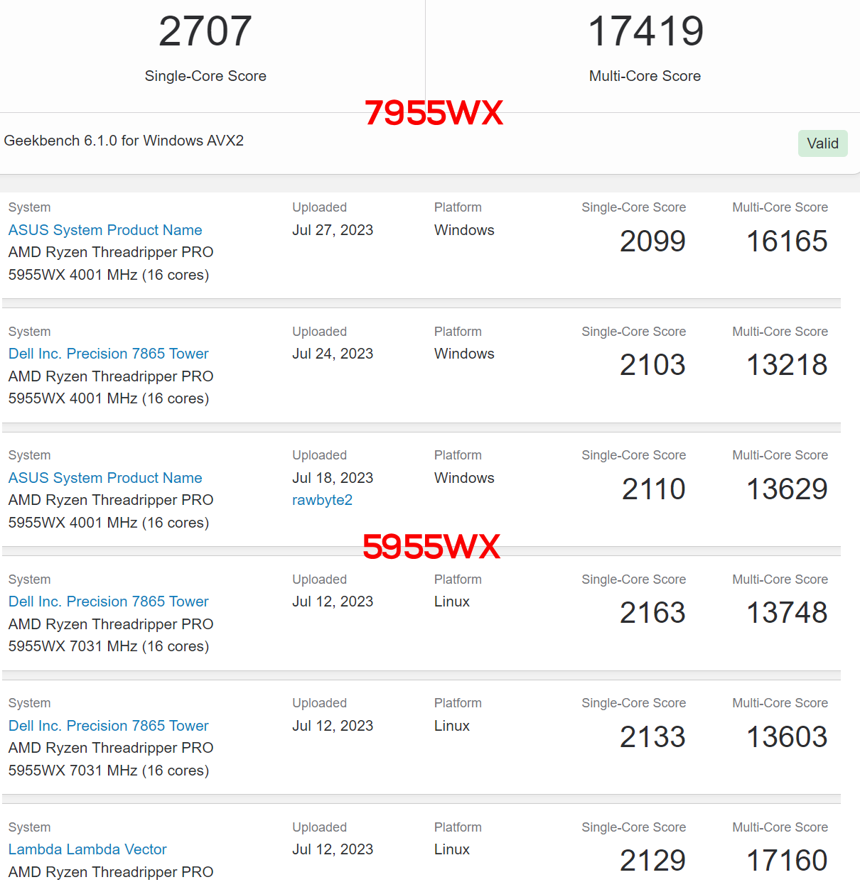 AMD将推出基于Zen4架构的线程撕裂者PRO 7000WX系列,我们已经见过96核心PRO 7995WX、64核心PRO 7985WX的泄露。现在,第一次看到了16核心型号。它的名字应该是线程撕裂者PRO 7955WX,16核心32线程,二级缓存16MB,三级缓存只有64MB,基准频率4.5GHz,最高加速频率5.17GHz,热设计功耗应该也是350W。