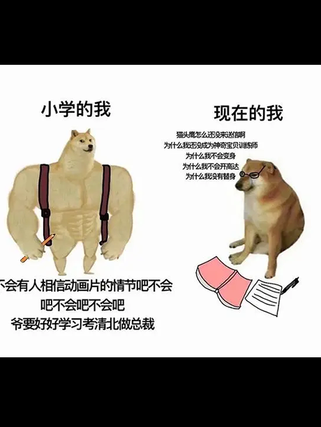 其中Swole Doge大战Cheems更是成了神级梗图,一只强壮的狗子对比这只「弱弱」的Cheems,搞笑的反差激发了无数灵感,给网友们带来了太多欢乐。