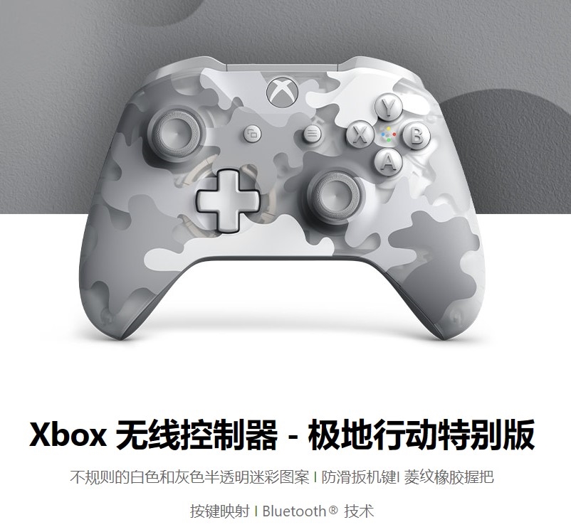 除星空特别涂装外,微软还一并发布了“极地迷彩”与“矿物迷彩”两款主机壳,完美匹配之前发布的同色手柄: