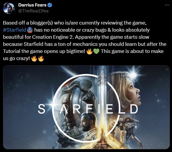 另据某游戏主播介绍,《星空》评测人士目前情绪稳定,尚未发现什么重大bug,Creation Engine 2游戏引擎的画面绝赞。鉴于游戏具备复杂的太空探索机制,《星空》显然是一款慢热型游戏,只要过了新手教程就能带你飞,相信太空歌剧爱好者与RPG玩家会乐在其中。