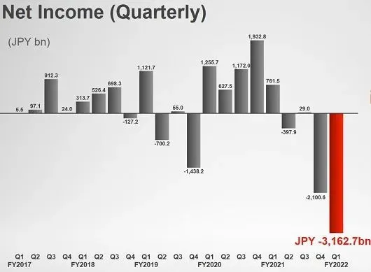这就导致了过去 2 年时间,软银一直狂赔钱。