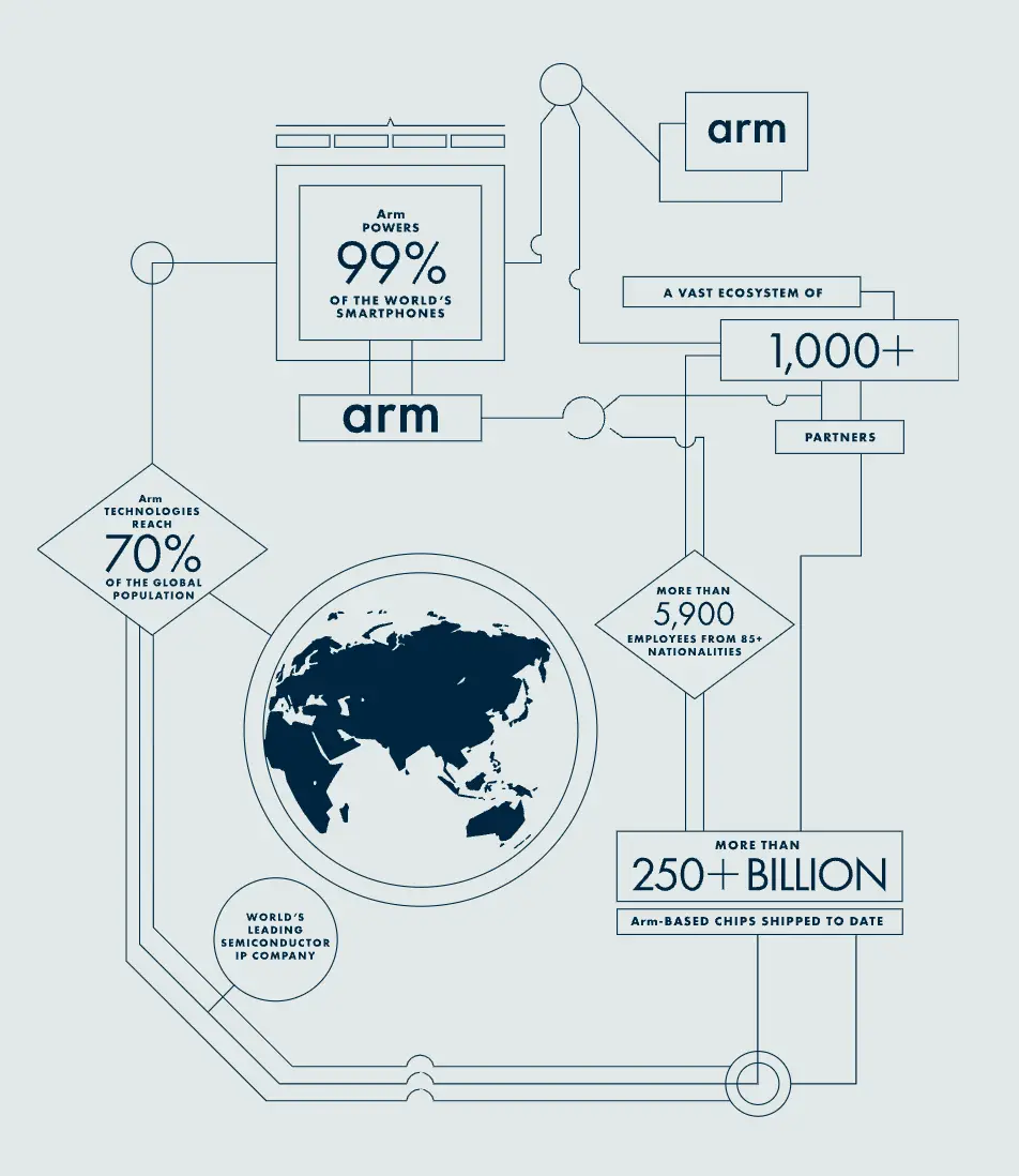 据统计,目前有超过 99 %的智能手机都使用了 Arm 的芯片架构,像苹果、英伟达、高通、三星还有联发科这些个科技巨头都是 Arm 的客户。