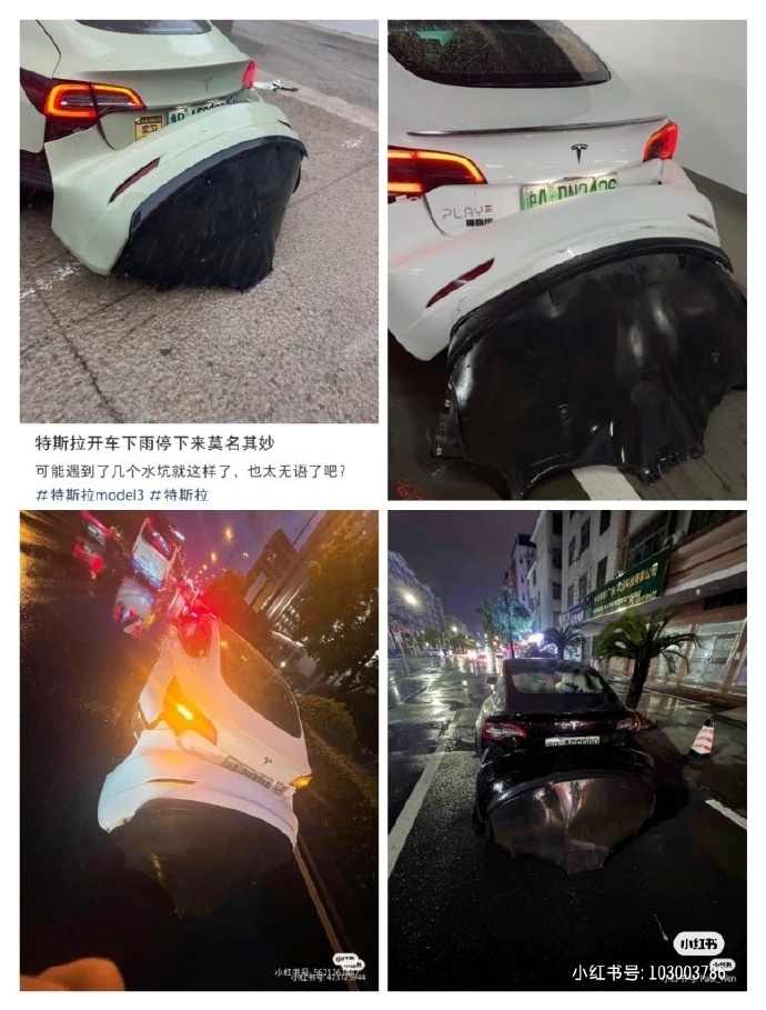 夏季雨水充沛,不少道路出现积水现象。近日,多名车主晒出自己的特斯拉因涉水导致“脱肛”的状况。多张爆料照片显示,特斯拉后保险杠底部直接翻出,卡在马路上,状况如出一辙。