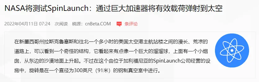 这一成功让Spin Launch成了各大科技公司炙手可热的合作对象,连NASA都给它寄了合同。