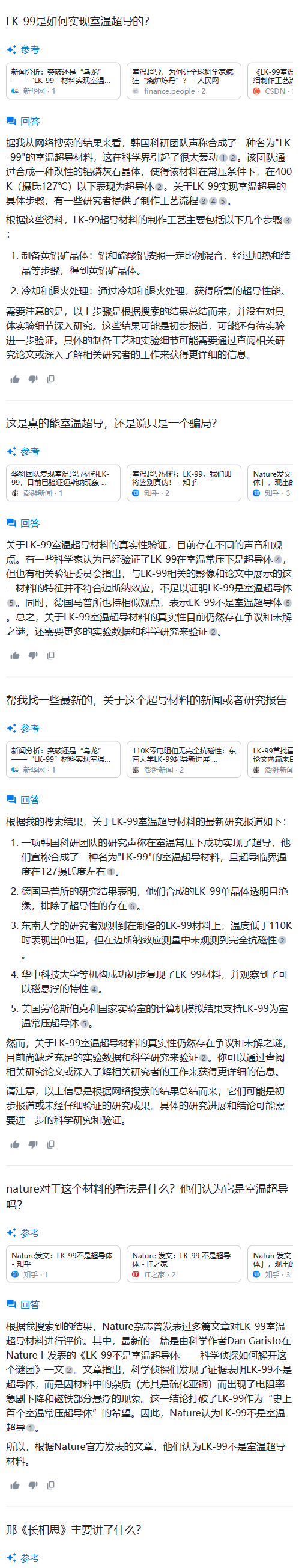 差评君也选了最近互联网大热的室温超导话题,并且,为了验证它是不是能读懂前后文,追问的时候,故意用的是模糊的主语。