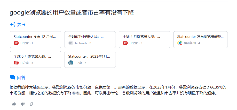不知道大家还记不记得, AI 大模型刚登场的时候,很多人都说这玩意和搜索引擎到底有啥区别啊。结果就是接入了 Bingchat 的 New Bing ,风头一度盖过了绝对垄断的谷歌,赚足了大家的关注度。不瞒大家说,我其实已经快半放弃传统搜索了。