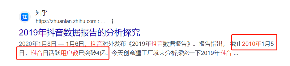 所以,最后的测验里,差评君特地挖了一个坑,问了一个根本不存在的数据:抖音 2010 年的用户数。