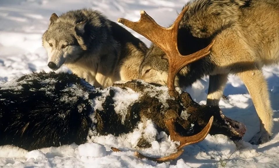 驼鹿的体型是狼的8倍,面对一个这样的猎物,狼在健康状态不理想的情况下,它们很难和驼鹿抗衡。
