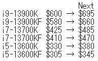 i9-14900KF也会从580美元涨到660美元,涨幅13.8%。