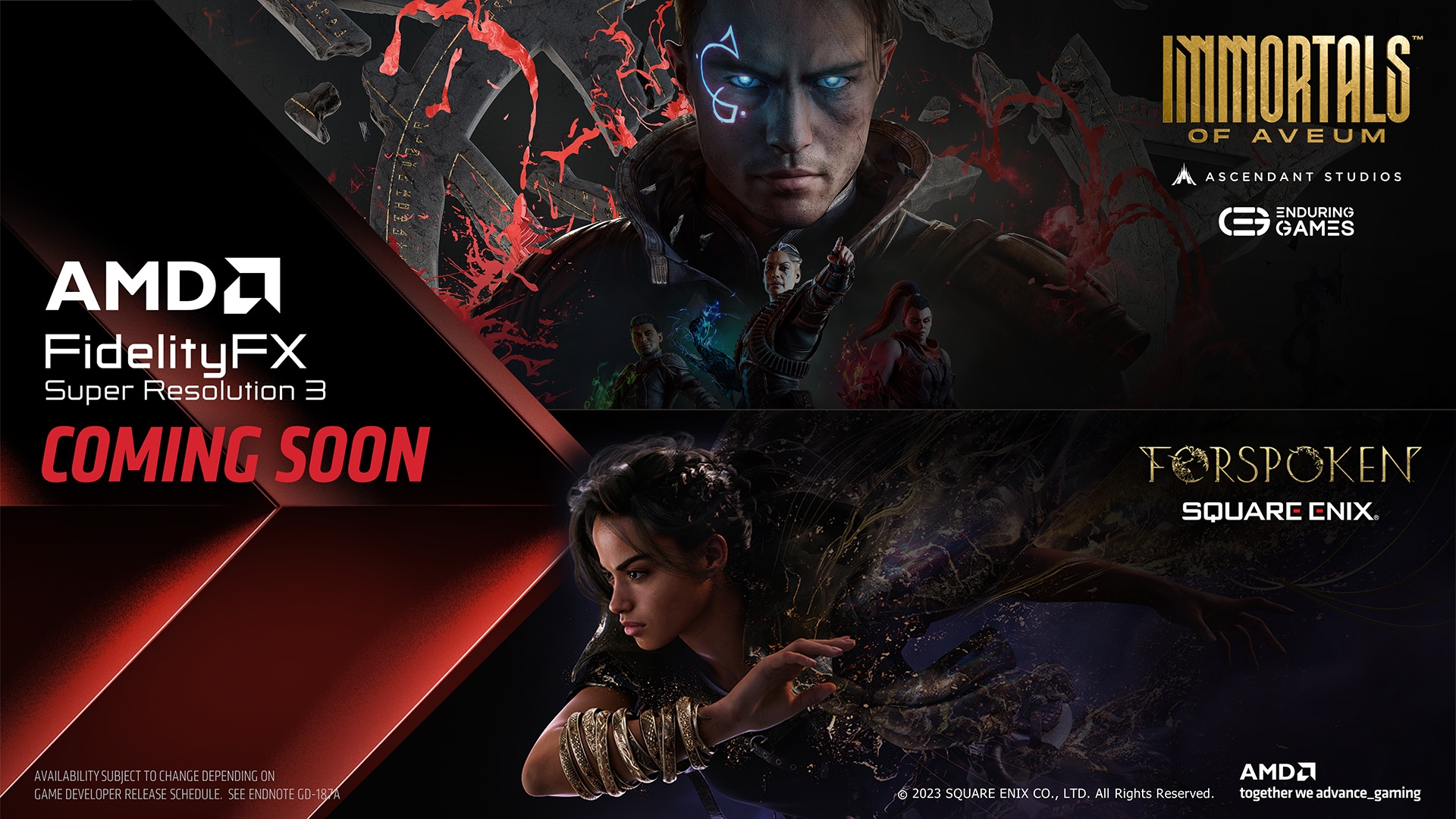 FSR 3将于今年秋天在《魔咒之地》(Forspoken)、《不朽者传奇》(Immortals of Aveum)两款游戏上首发落地,但具体时间暂时欠奉。