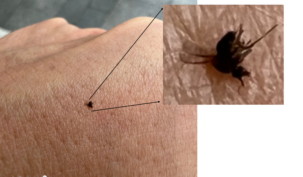 当被蠓虫叮咬时,你会感觉到轻微的疼痛,然后在被咬的位置会看到一个芝麻大的小黑点,还没等你看清是什么,它就突然消失不见了,根本没办法看到它的飞行轨迹。当然,如果不被干扰,它们吸食时间可以达到 2-5 分钟。