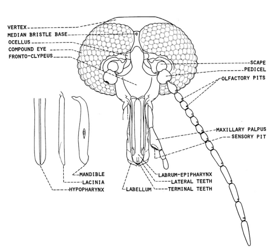 雌性蠓的头部、口器等示意图。来源:文献[5]