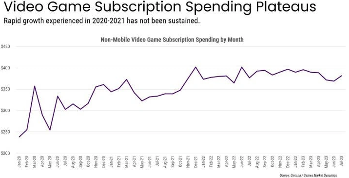 快科技8月30日消息,根据Circana提供的数据,目前,北美市场的游戏玩家,在订阅服务上的支出已经趋近于停滞。