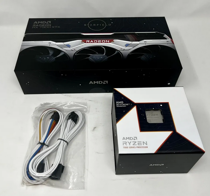 虽然官方此前曾表示它们是非卖品,但是现在玩家门有机会花费真金白银抢到 AMD《星空》限定限量版显卡和 CPU 捆绑包。其中包括白色主色调、点缀了《星空》选择的“NASA朋克”色彩的 RadeonRX 7900 XTX 和特殊包装的 Ryzen 7 7800X3D。这一全球限量的唯一一套拍卖捆绑包可能会飙至高价。