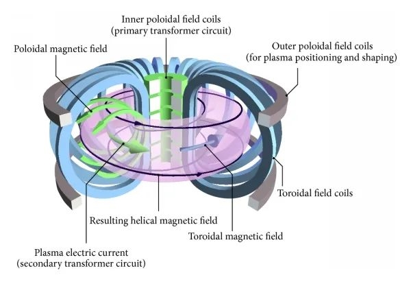 托克马克装置原理。图片来源:Wikipedia
