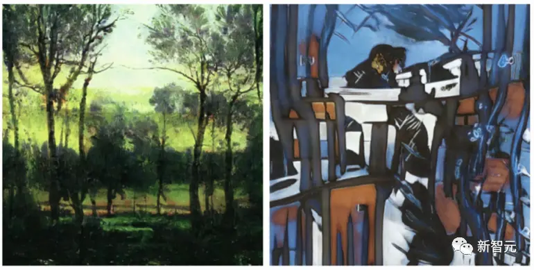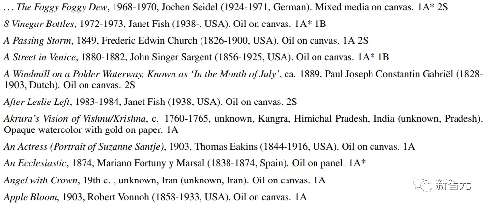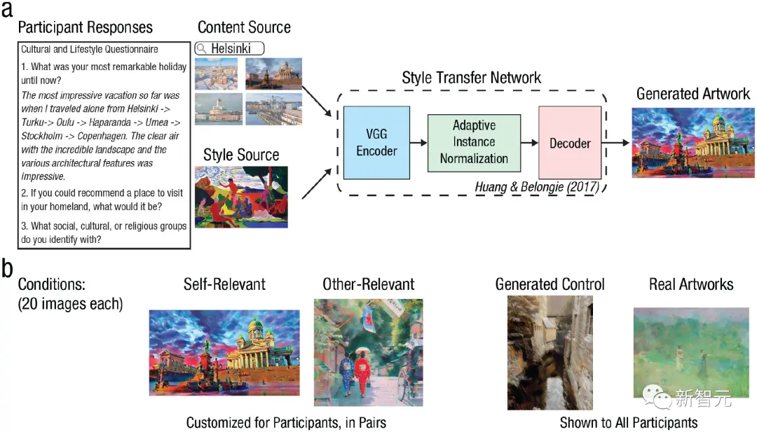 研究人员首先从之前的数据中选择了20幅艺术品,覆盖自然、人工内容、室内、室外场景以及不同的建筑结构,然后使用3种迁移风格生成AI作品,共计80张图片,