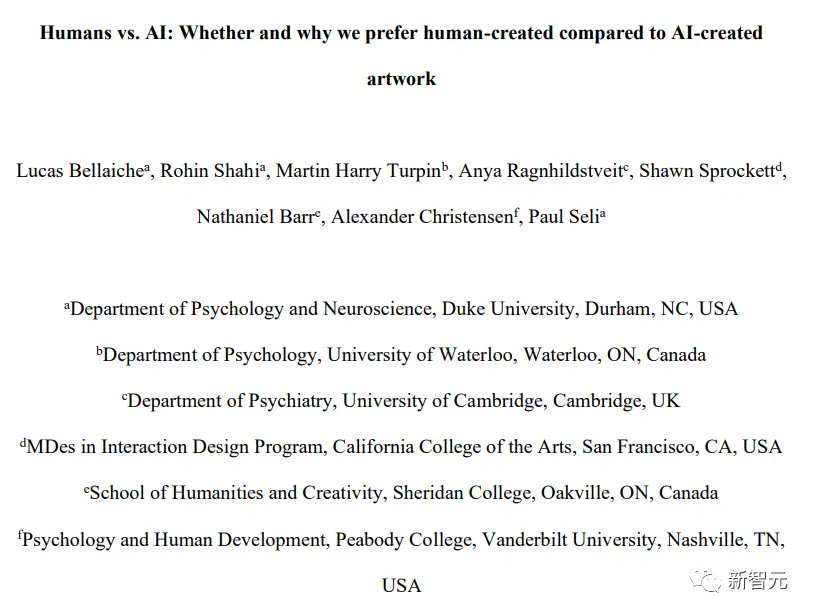 来自杜克大学、滑铁卢大学、剑桥大学等机构的研究人员探索了是否、以及为什么人类不喜欢AI生成的艺术作品。