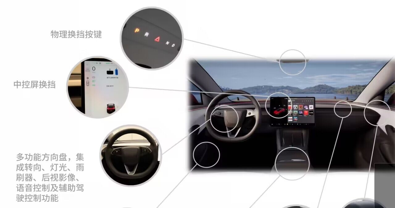 而在车内按键和拨杆的进化上,特斯拉更为极端,直接取消掉了转向灯和怀挡拨杆。转向灯按键被集成在方向盘的左手区域。