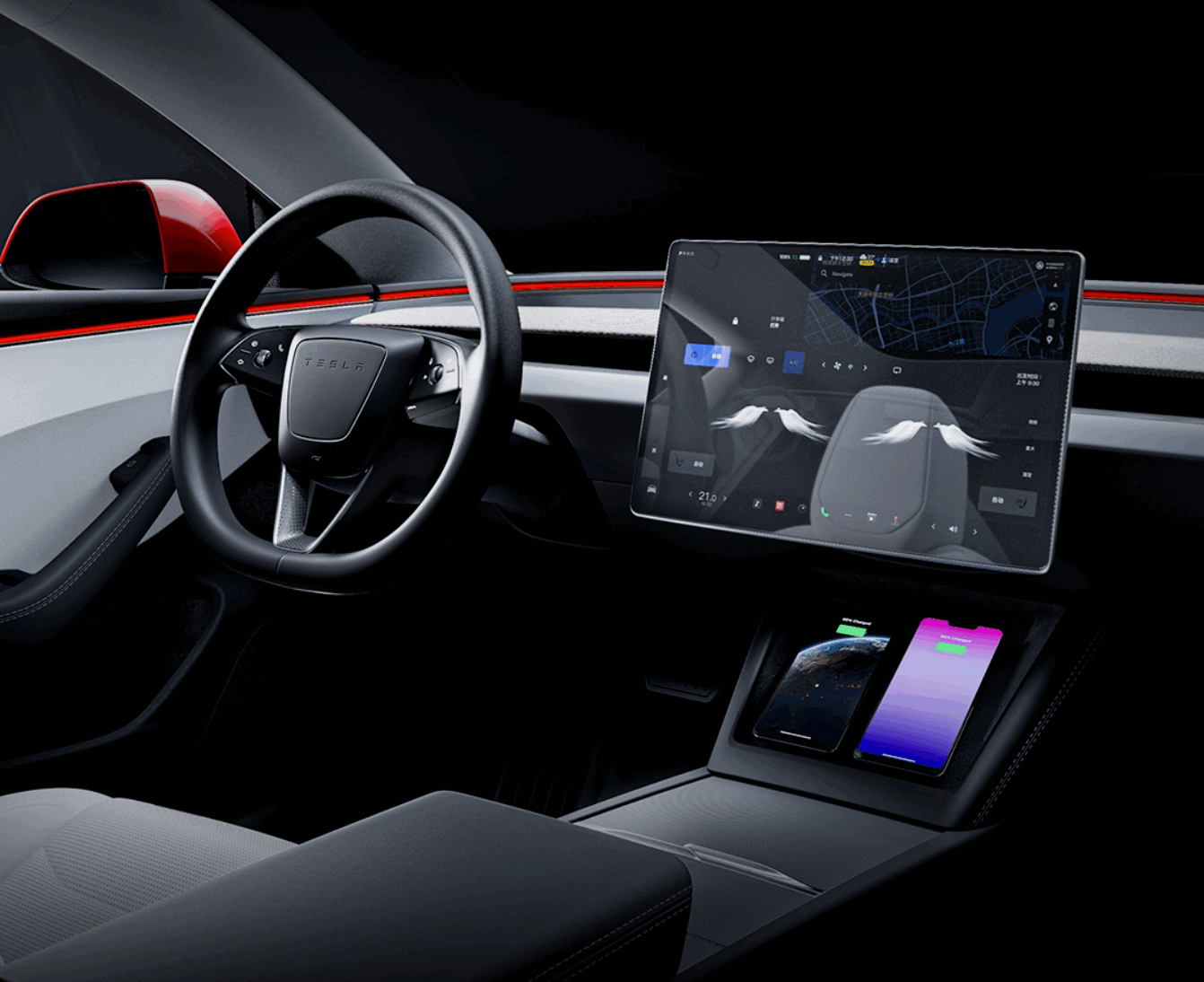 车辆安全方面,新款Model 3还增加了远端安全气囊,优化侧面结构,并增加了车内盲区警报灯。