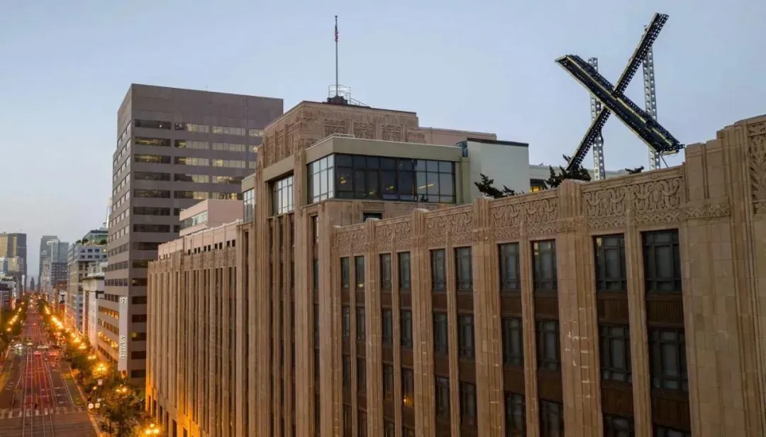 2023 年 7 月 29 日,旧金山 Twitter 总部屋顶上新建的 X 标志。