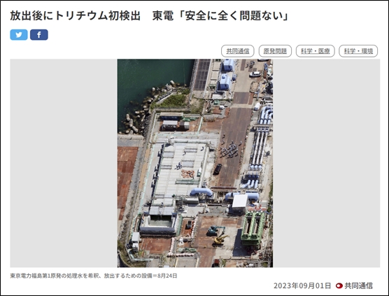 日本核污染水排放口首次检测出放射性物质氚 东电表示在安全上完全没问题