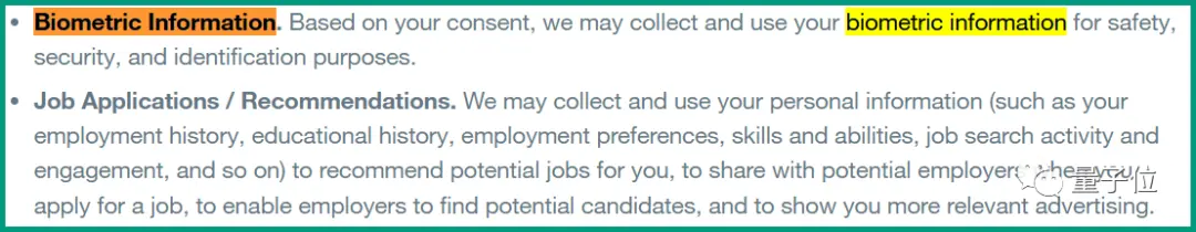除此之外,由于X将推出类似于领英的求职平台功能,还会收集个人信息,包括工作经历、教育经历、就业偏好、技能和活动能力,以及求职活动和参与度等,以此为用户推荐潜在的工作。