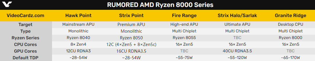 AMD今年的锐龙7000笔记本处理器产品线相当复杂,多种工艺、CPU架构、GPU架构混合在一起。明年的锐龙8000系列也不遑多让,已知至少四个系列,从低到高分别是Hawk Point、Strix Point、Fire Range、Strix Halo(Sarlak)。